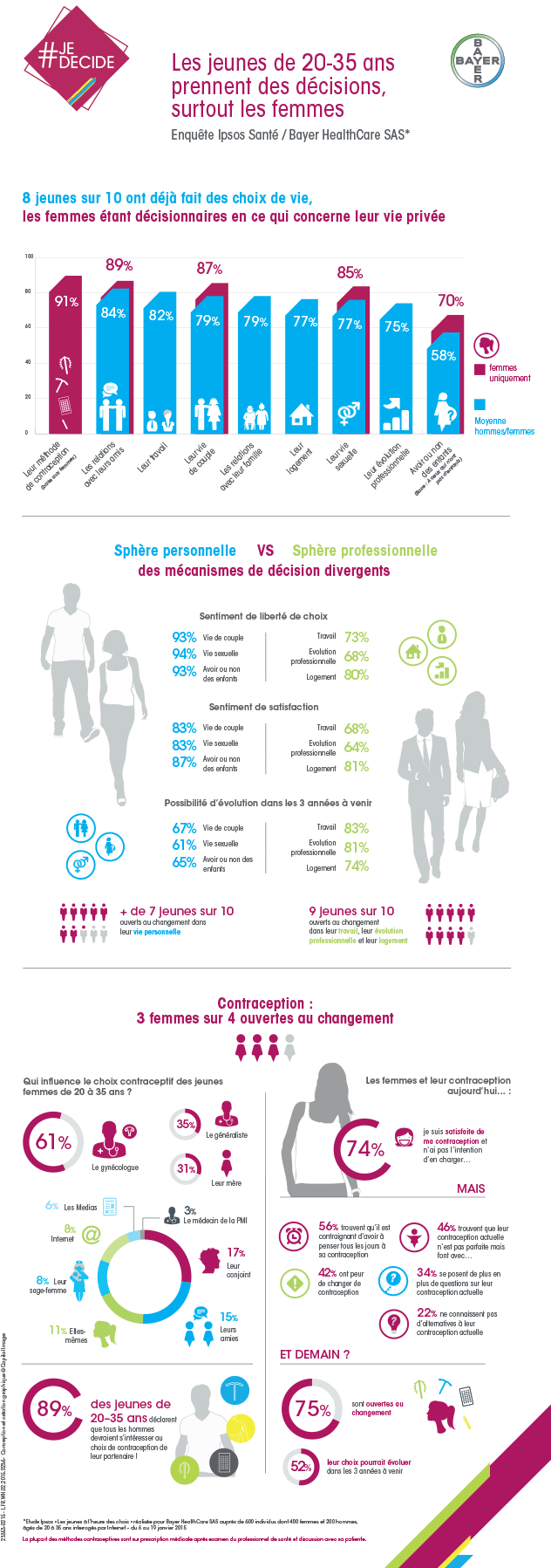 Cette enquête s’inscrit dans la volonté de Bayer HealthCare de sensibiliser les femmes sur la prise de décision active notamment en ce qui concerne leur contraception et de continuer à communiquer auprès de ces femmes sur les multiples options qui s’offrent à elles pour choisir le mode contraceptif qui leur convient le mieux. La contraception fait partie des grandes décisions auxquelles les 20-35 ans sont confrontés à cette période.